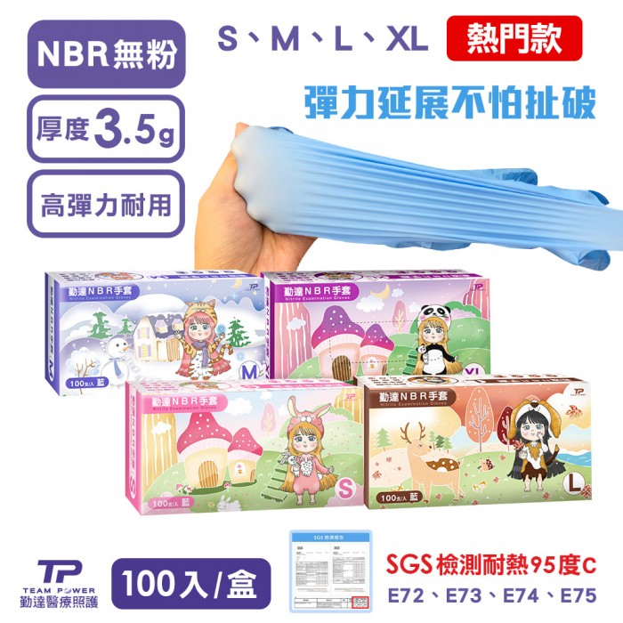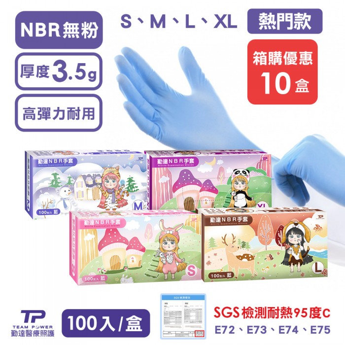 【勤達】 NBR無粉手套 藍 -100只/盒-丁晴-加厚款 注意事項 拋棄式手套 |