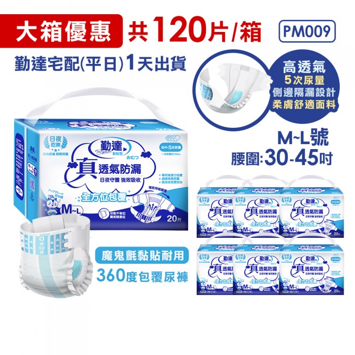 | 規格/包裝:【勤達】真透氣防漏超乾爽尿褲-L~XL號17片/包(單包) |
