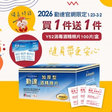 限時買1件送1件★【勤達】加厚型-滅菌消毒酒精棉片100片/盒-Y51