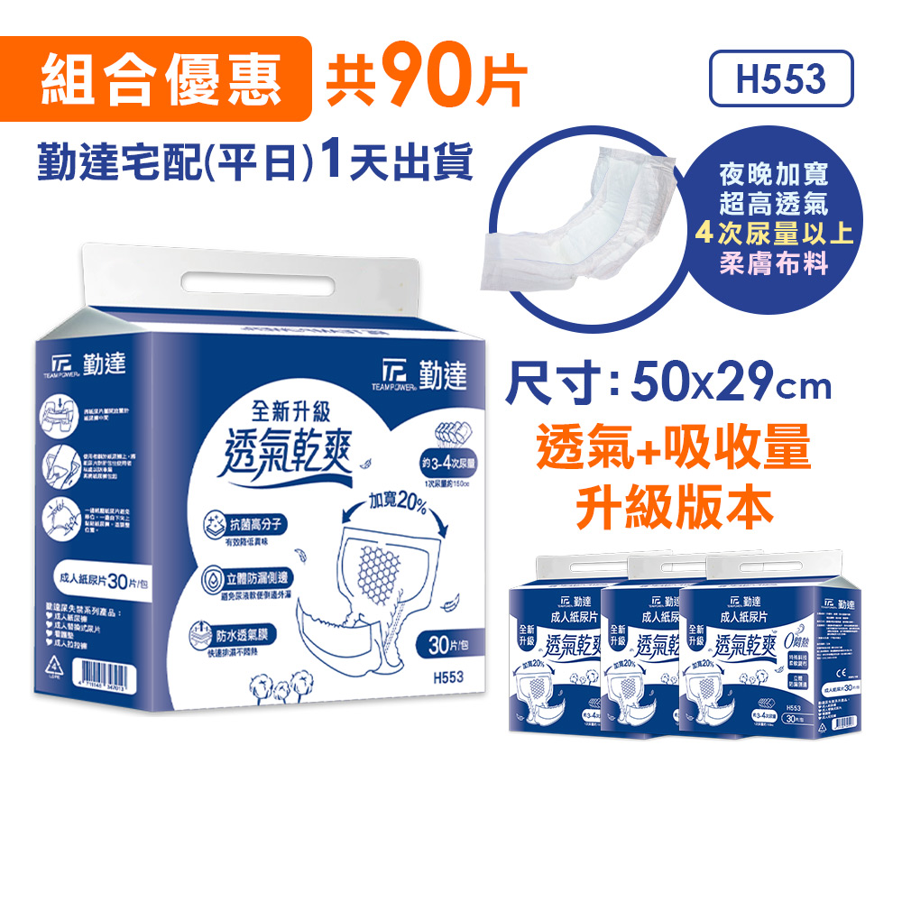 小家庭推薦►【勤達】透氣長效乾爽加大成人替換尿片-30片X3包(共90片) #H553