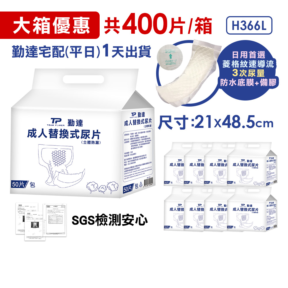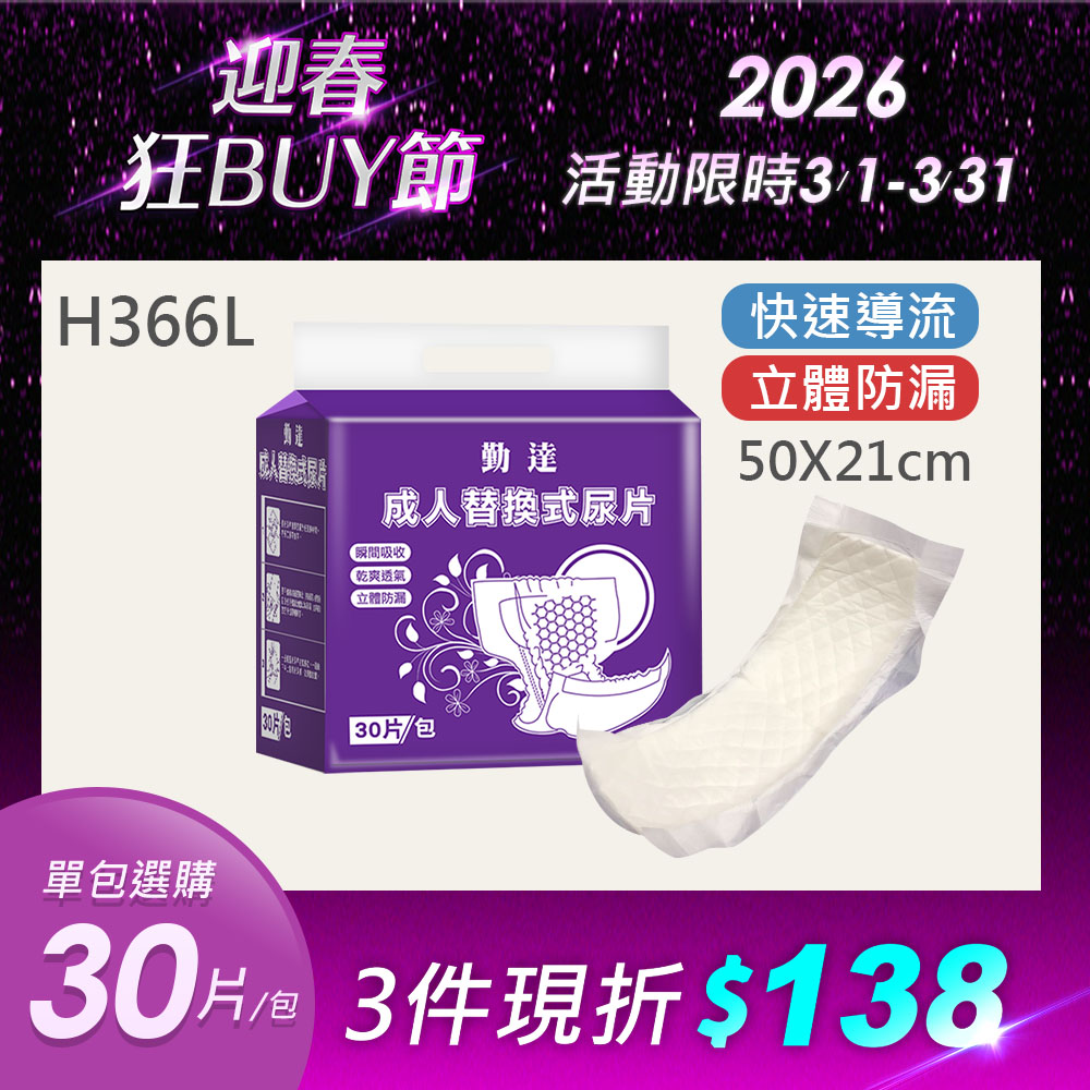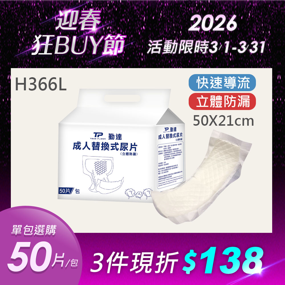 【勤達】成人立體防漏隔邊替換尿片 50片/包(單包)- H366L