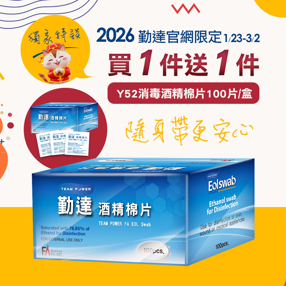 限時買1件送1件★【勤達】加厚型-韓國福艾-滅菌消毒酒精棉片-共100片盒-Y01