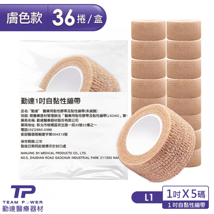 36卷/盒-勤達醫療用自黏繃帶-膚色1吋x5碼-L1